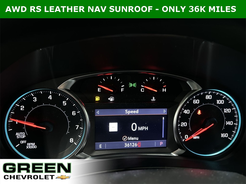Jet Black Leather, *** 1-OWNER, SOLD HERE NEW - TRADE IN FOR NEW TRAVERSE ***, 120-Volt Power Outlet, 2 USB Data Ports, 2 USB Data Ports w/SD Card Reader, Adaptive Cruise Control, Advanced Safety Package, Bose Premium 7-Speaker Audio System Feature, Driver Seatback Map Pocket, HD Surround Vision, Heated Steering Wheel, Infotainment Package, Outside Heated Power Adjustable Mirrors, Perforated Leather-Appointed Seat Trim, Power Sunroof, Preferred Equipment Group 1RS, Radio: Chevrolet Infotainment 3 Plus System w/Navi, RS Leather Package.