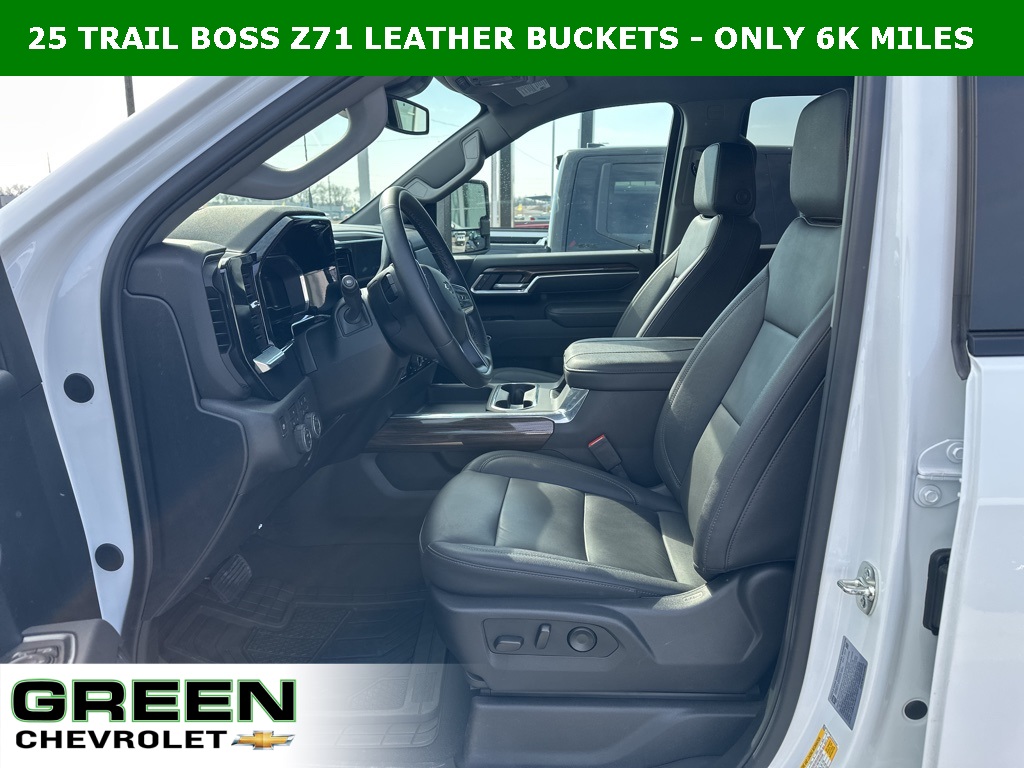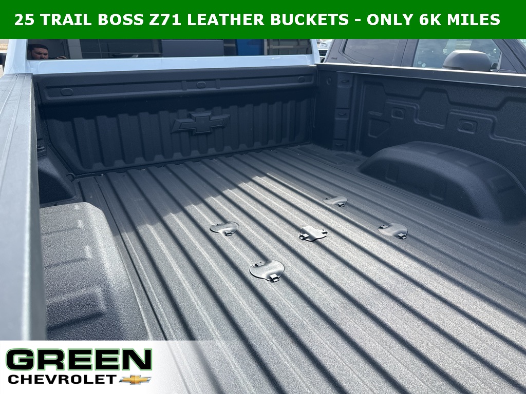 Jet Black w/Perforated Leather Seat Trim, 120-Volt Bed Mounted Power Outlet, 120-Volt Interior Power Outlet, 17" Machined Aluminum Wheels, 170 Amp Alternator, 2-Speed Electronic Shift Transfer Case, 3.73 Rear Axle Ratio, 4-Way Manual Driver Seat Adjuster, Animated LED Projector Headlamps, Black Chevytec Spray-on Bedliner, Black Grille Bar with Chevy Black Bow Tie, Black Mirror Caps, Bluetooth For Phone, Chevrolet Connected Access Capable, Color-Keyed Carpeting Floor Covering, Compass, Deep-Tinted Glass, Durabed Pickup Bed, Electronic Cruise Control with Set and Resume Speed, EZ Lift Power Lock and Release Tailgate, Front Frame-Mounted Red Recovery Hooks, Front Rubberized Vinyl Floor Mats, Gooseneck/5th Wheel Prep Package, Halogen Reflector Headlamps, HD Rear Vision Camera, Heated and Auto-Dimming Vertical Trailering Mirrors, Heated Vertical Trailering Mirrors, High Gloss Black Front Bumper, High Gloss Black Mirror Caps, High Gloss Black Rear Bumper, Hill Descent Control, Keyless Open and Start, Leather Package, LED Smoked Amber Roof Marker Lamps, Off-Road Suspension, OnStar Services Capable, Power Door Locks, Power Front Windows with Driver Express Up/Down, Power Front Windows with Passenger Express Down, Power Rear Windows with Express Down, Preferred Equipment Group 1LT, Push Button Start, Rear 60/40 Folding Bench Seat (folds Up), Rear Rubberized Vinyl Floor Mats, SiriusXM with 360L Trial Subscription, Standard Tailgate, Steering Wheel Audio Controls, Suspension Package, Trail Boss Package, Up-Level Rear Seat with Storage Package, Wheels: 20" High Gloss Black Painted, Wi-Fi Hotspot Capable, Wireless Phone Projection, Wrapped Steering Wheel, Z71 Off-Road Package.